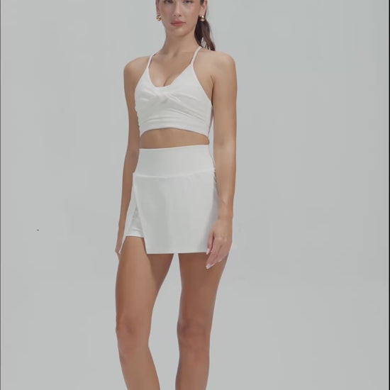 Clean and confident in crisp white, this monogram bra brings a fresh, modern edge to your active wardrobe. The sculpted cut and refined details create a balanced look that feels effortless from studio sessions to everyday wear.