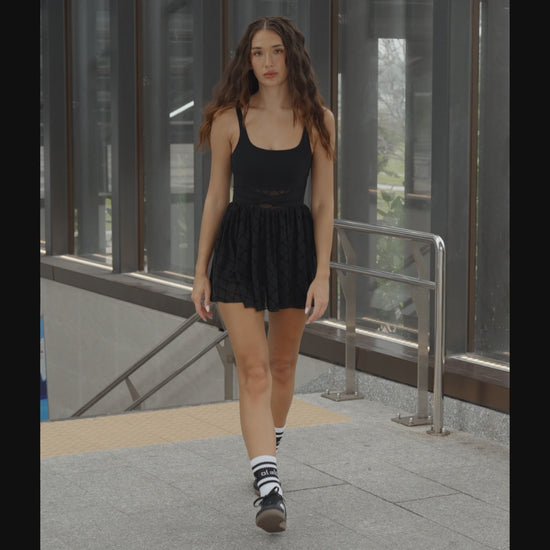 Elegant and understated, this black monogram dress captures fluid movement in a clean, modern silhouette. Crafted from breathable OlaMove™ fabric, it drapes smoothly while offering gentle stretch and support. Designed to move with ease from day to night, embodying quiet confidence in every step.